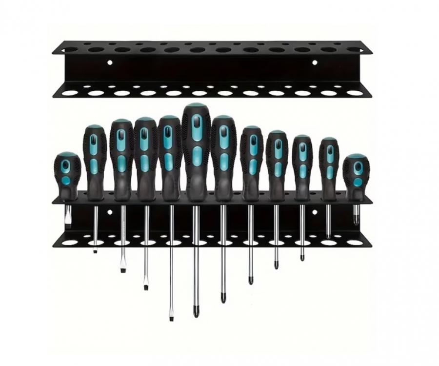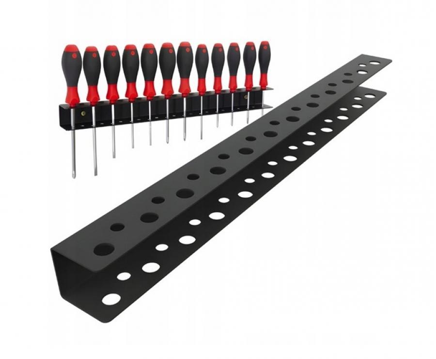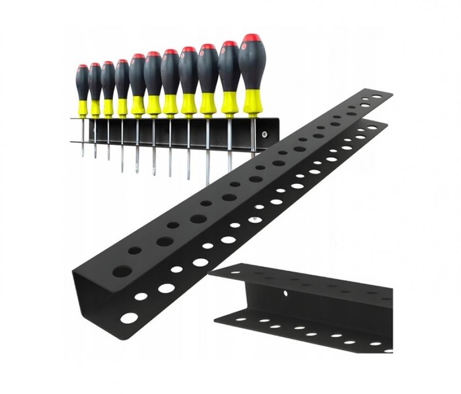 Acest organizator metalic, robust și compact, este o alegere excelentă pentru menținerea ordinii în atelier. Designul cu 23 de locuri permite depozitarea organizată a unei game largi de șurubelnițe și unelte de mână mici, astfel încât fiecare instrument poate fi găsit instantaneu în timpul lucrului.